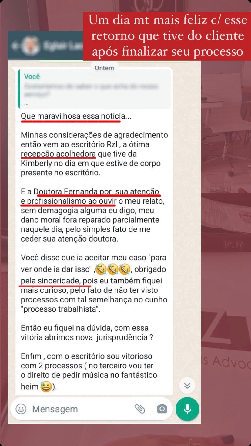 O nosso tratamento é único, realizado de forma personalizada e individualizada. Respeitamos a sua história e o seu problema, por isso nos qualificamos como um escritório Boutique e não “escritório de massa”, sempre estaremos em busca de estratégias e medidas técnicas especialmente direcionadas a você e não o encaixaremos em modelos, que não geram resultados.